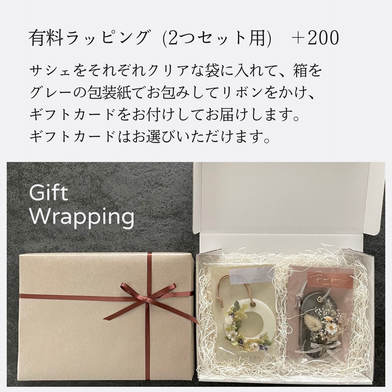⚪︎有料のギフトラッピングには"For you"のギフトカードをお付けします。こちらは"Thank you" "Happy birthday"にも変更可能です。ご希望の方は備考欄にご記入ください。
